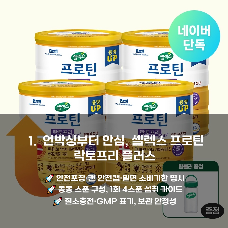 근력 개선 단백질 셀렉스 락토프리 플러스 608g 4개, 사용후기와 섭취 팁안녕하세요, 네이버 체험단입니다. 오늘은 [근력 개선 단백질] 셀렉스 프로틴 락토프리 플러스 608g, 4개에 대해 소개해드릴게요.궁금한 점이 있으시면 댓글이나 문의글로 남겨주시면 감사하겠습니다.언박싱과 패키지 구성에서 느낀 첫인상이번에 받아본 [근력 개선 단백질] 셀렉스 프로틴 락토프리 플러스 608g, 4개 세트는 박스부터 안전포장이 꼼꼼해서 믿음이 갔어요요. 각 캔에 안전캡이 적용되어 위생적으로 느껴졌고요요. 안쪽에는 변경된 작은 스푼이 함께 들어 있는데 1회 섭취량이 4스푼으로 안내되어 있어 헷갈리지 않았어요요. 질소충전과 GMP 표기가 있어 보관 안정성도 신경 쓴 게 보였고, 캔 밑면에 소비기한이 명확히 표기되어 있어 재..